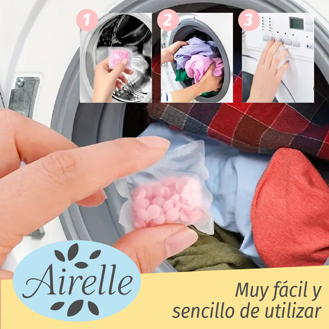 ¡No necesitás ser una experta en lavado! Con Airelle™, simplemente colocá 1 o 2 bolsitas directamente en el tambor vacío antes de cargar tu ropa y dejá que hagan su magia. Sin ensuciar, sin medir, sin complicaciones. Perfecto para quienes tienen poco tiempo y quieren un lavado con aroma espectacular.