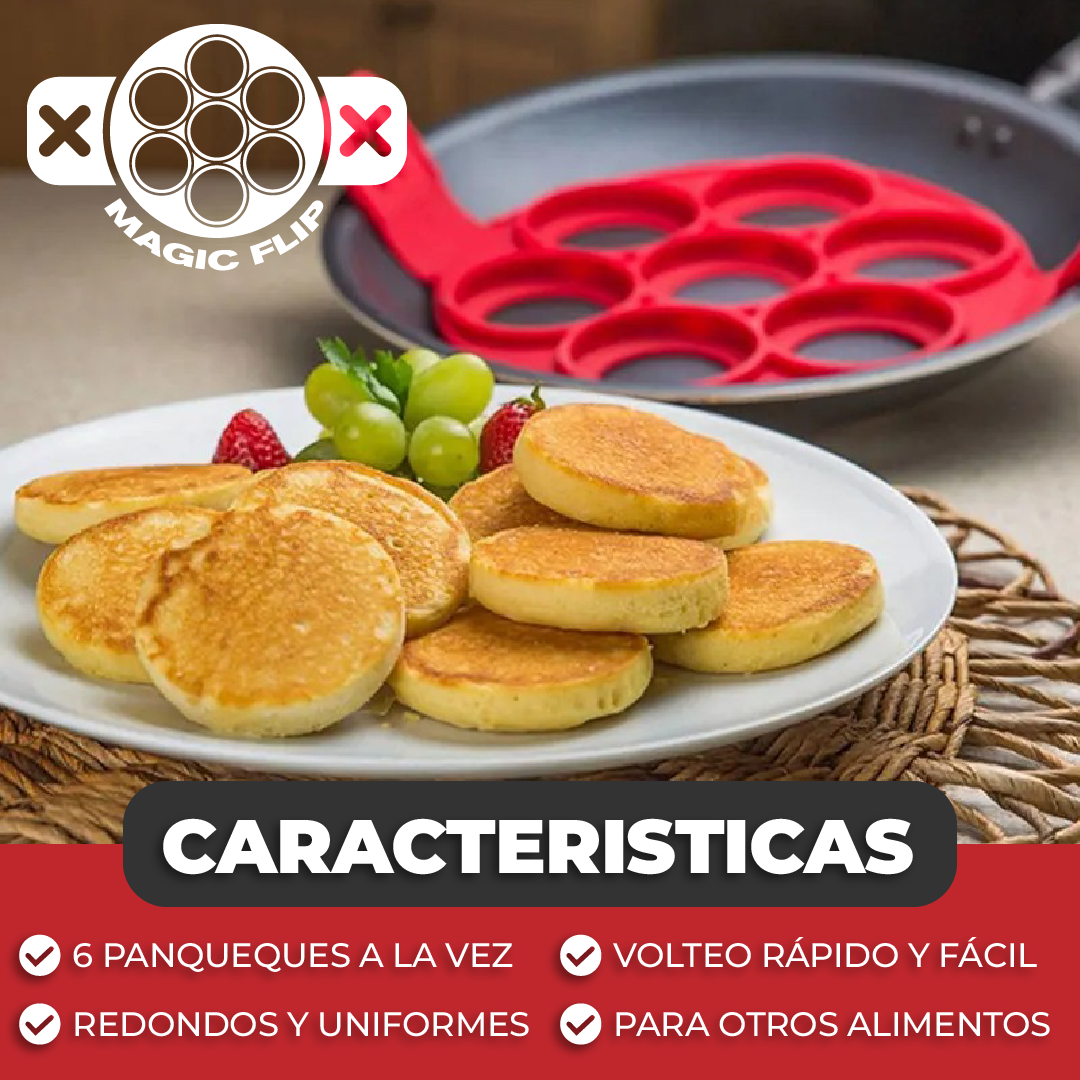 Dile adiós a los intentos fallidos al voltear tus panqueques. Gracias a su diseño inteligente, Magic Flip te permite voltear varios panqueques al mismo tiempo sin romperlos ni ensuciar. Perfecto para familias o reuniones, ahorrarás tiempo y esfuerzo mientras tus panqueques se cocinan de manera uniforme y sin problemas.