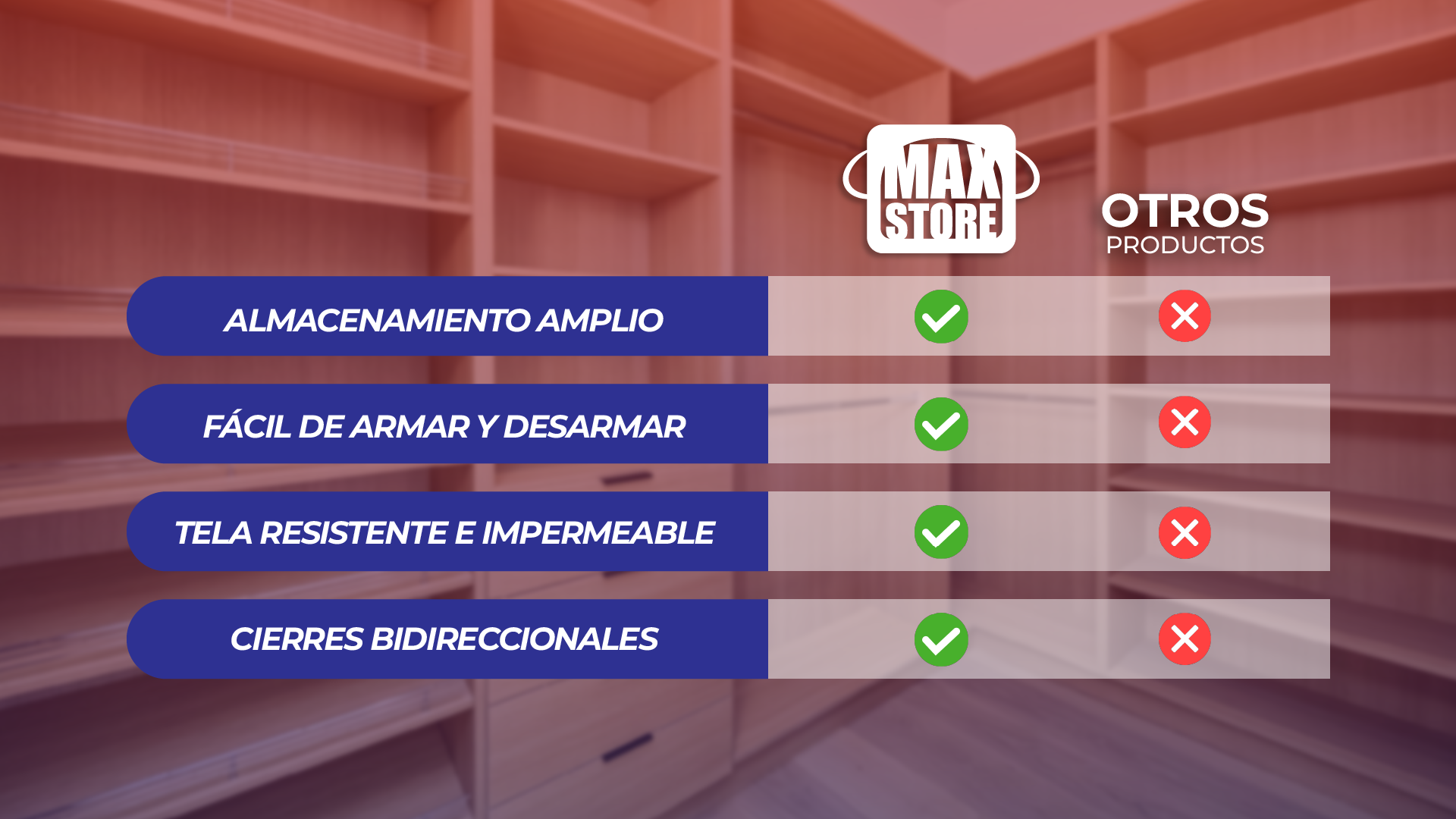 Las Max Store son perfectas para cualquier espacio, ya sea debajo de la cama, en armarios, áticos o sótanos. Cuando no las necesites, simplemente pliégalas para ahorrar espacio. Además de ser altamente funcionales, su diseño moderno y elegante complementa cualquier habitación.
